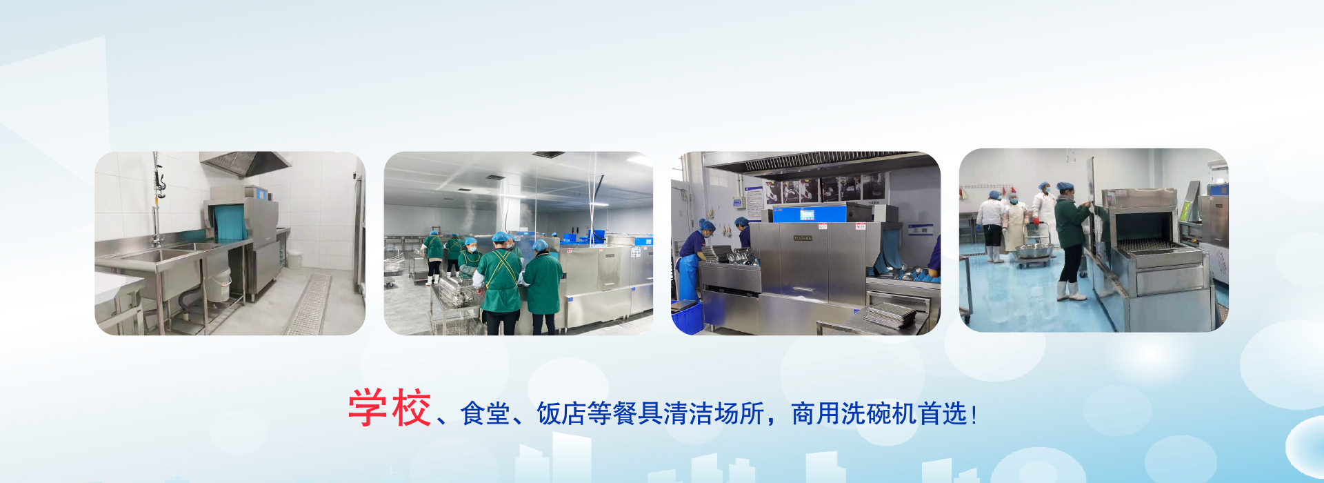 旭申長龍式洗碗機包括主洗+漂洗+烘干等模塊,功能齊全,一站式解決客戶餐具清潔的所有需求。